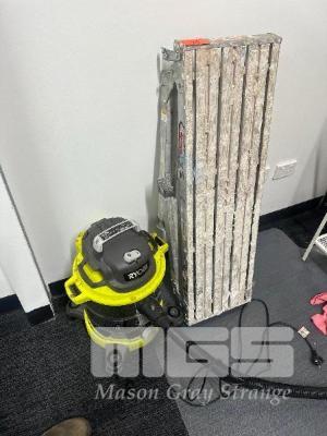 ALLOY WORK PLATFORM, GORILLA ADJUSTABLE HEIGHT, 120kg RATED WITH RYOBI WET DRY VAC MOD: RVC-1220IG 240V