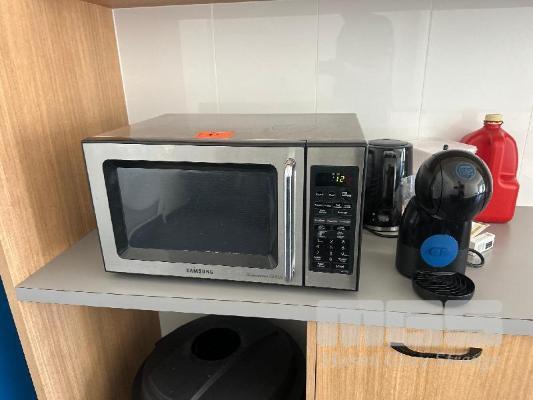 SAMSUNG MICROWAVE, KETTLE, TOASTER, BIN, GLASSWARE, CUTLERY & POD MACHINE CONTENTS KITCHEN