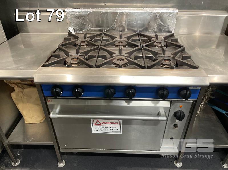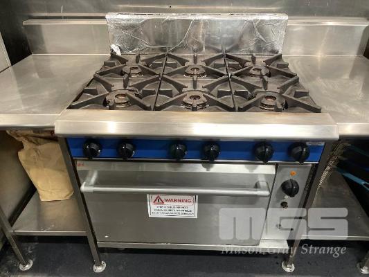 BLUE SEAL 6 BURNER OVEN RANGE, WITH CONVECTION OVEN, NATURAL GAS, MOD: G56DF, CODE: AUG56DF-N, SERIAL: 2281078, 900mm (W), 240V