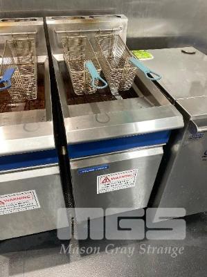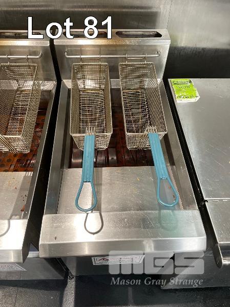 BLUE SEAL TWIN BASKET DEEP FRYER, NATURAL GAS, 20L WITH 2 x BASKETS & LID, 2 x 45MJ/h INFARED BURNERS, MOD: GT45, CODE: AUGT45-N, SERIAL: 2271367 450 x 812 x 1085mm