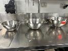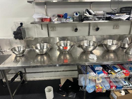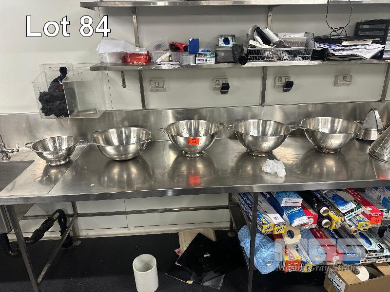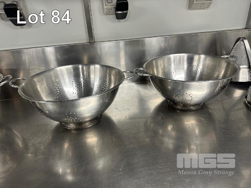 4 x STAINLESS STEEL COLANDERS, 400mm (D) & 1 x 300mm