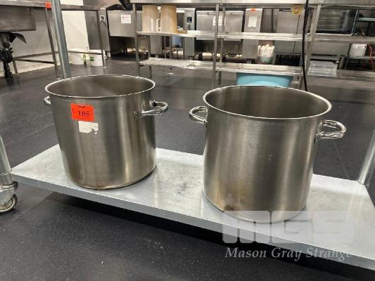 PAIR STAINLESS STEEL POTS, 370 x 340mm (D)