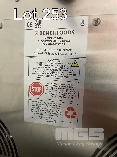 BENCHFOODS COMMERCIAL DEHYDRATOR, MOD: 28-CUD, SERIAL: 69874556203, 240V HARD WIRED