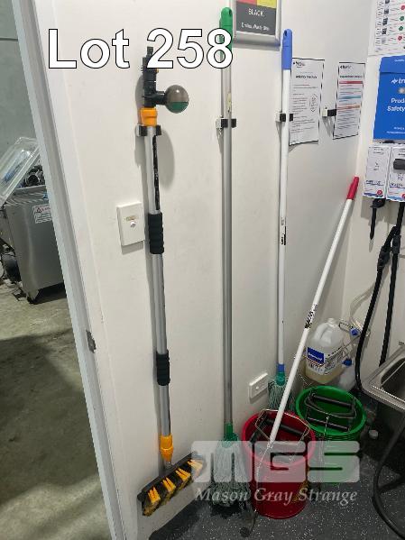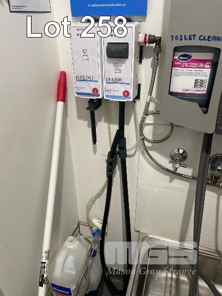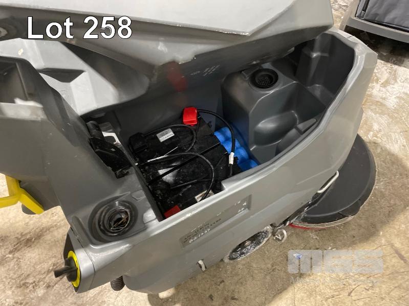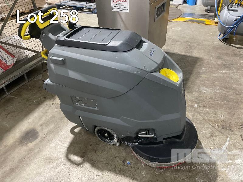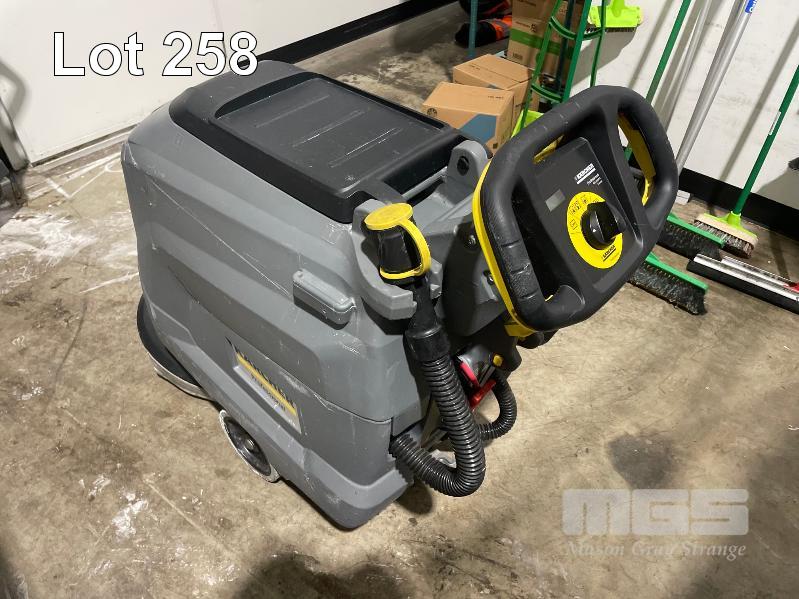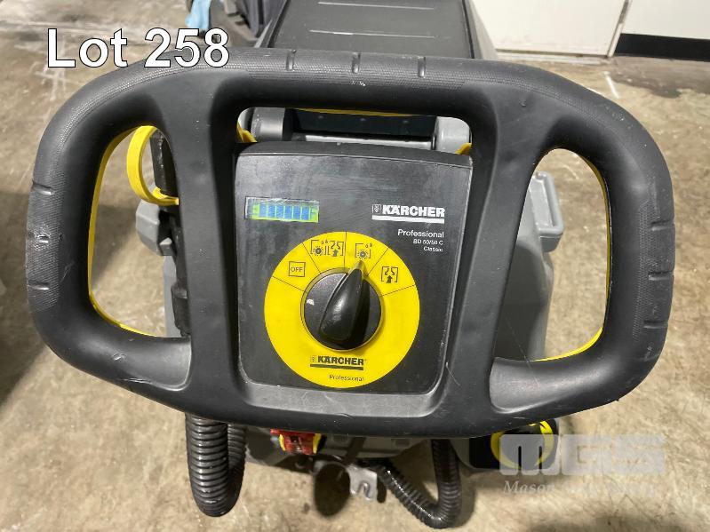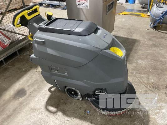 KARCHER WALK BEHIND SCRUBBER DRIER, DOM: 2021, MOD: BD 50/50C, SERIAL: 328174, WITH CHARGER, ACCESSORIES, WALLMOUNT CLEANER DISPENSING STATION, + MOPS & BUCKETS