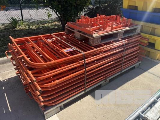 24 x ORANGE STEEL BARRICADE PANELS, 2100 x 1100mm & SOME FEET STANDS