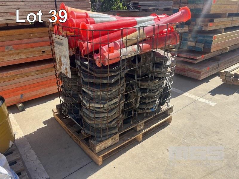 16 (APPROX) x ORANGE PLASTIC BOLLARDS & 72 x BASE PLATES