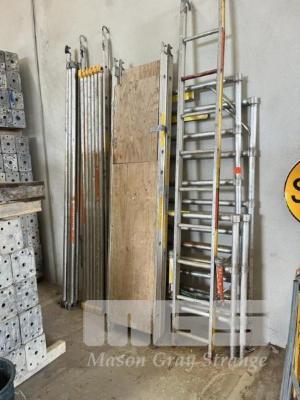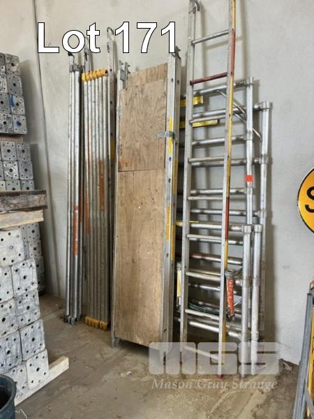 ALUMINIUM SCAFFOLD TOWER COMPRISING 4 x ALUMINIUM SCAFFOLD SECTIONS, 2 @ 1800 x 1200mm & 2 @ 1000 x 12090mm 12 x CROSS BEAMS, 2400mm & 23 x PLATFORMS, 2200 x 500mm