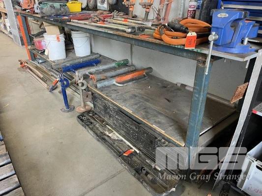 STEEL FRAMED TIMBER TOPPED WORK BENCH, 4200 x 840mm