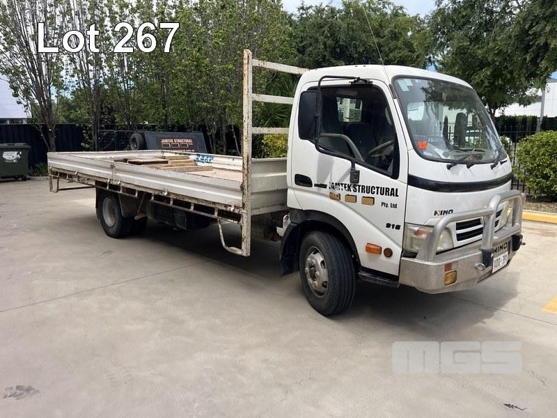 2007 HINO 300/916 C/CAB WIDE 2 TRAY TRUCK REG: X00 391 VIN: JHFZU32H300001066 ODO: 189,891kms INDICATED GVM: 8,500kg GCM: 12,000kg DIESEL, MANUAL TRANSMISSION, 5.4m TRAY