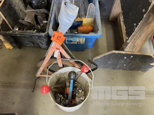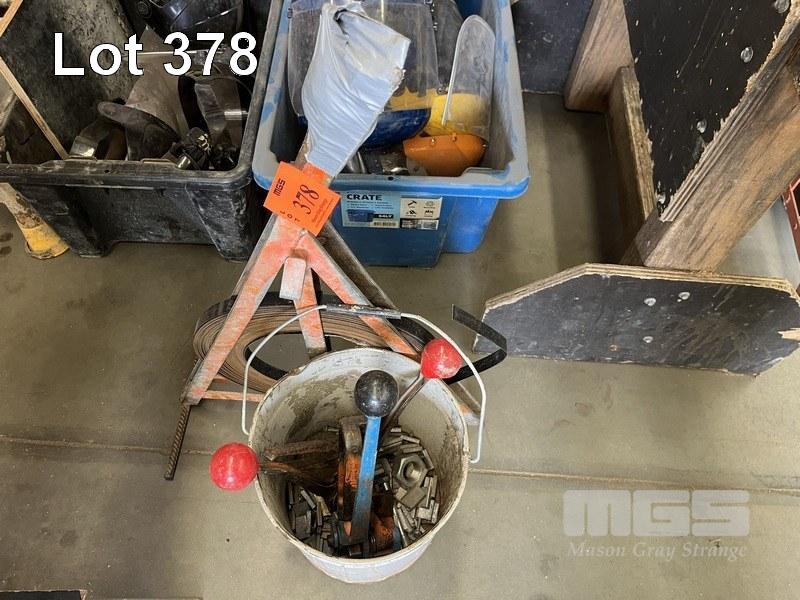 STEEL STRAP SYSTEM WITH DE REELING STAND TENSIONER & CRIMPER WITH BUCKET OF CRIMPS