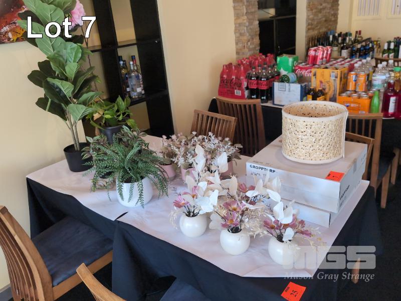 ASSORTED ARTIFICIAL PLANTS AND 4 X LAMP SHADES (CONTENTS TABLETOP)