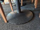 2 X DINING TABLES & 4 X PADDED BENT BACK DINING CHAIRS. TABLES 800 X 800 MM, RAW MDF TOPS WITH HEAVY STEEL BASE INC. TABLECLOTHS.