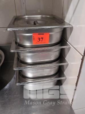 4 X GASTRONORM 1/2 PANS, DEPTH 100 MM WITH LIDS.