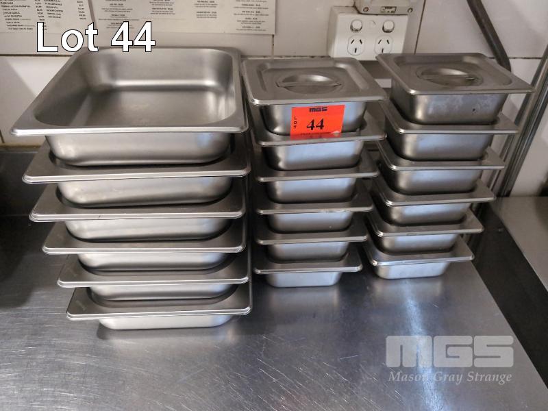 ASSORTED GASTRONORM PANS 5 X 1/2 PANS, DEPTH 70 MM WITH LIDS 1 X 1/2 PAN, DEPTH 70 MM, NO LID 12 X PANS TRENTON 70 X 70 MM, DEPTH 65 MM WITH LIDS.