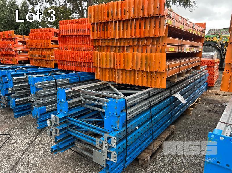 11 BAYS PALLET RACKING COMPRISING, 12 x DEXION UPRIGHTS, 4960mm (H) x 840mm (W) 108 x CROSSBEAMS, 2680mm (L) 2 X PALLETS