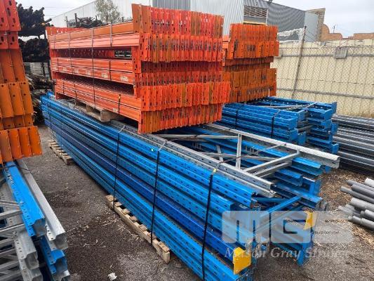 11 BAYS PALLET RACKING COMPRISING, 12 x DEXION UPRIGHTS, 4960mm (H) x 840mm (W) 108 x CROSSBEAMS, 2680mm (L) 2 X PALLETS