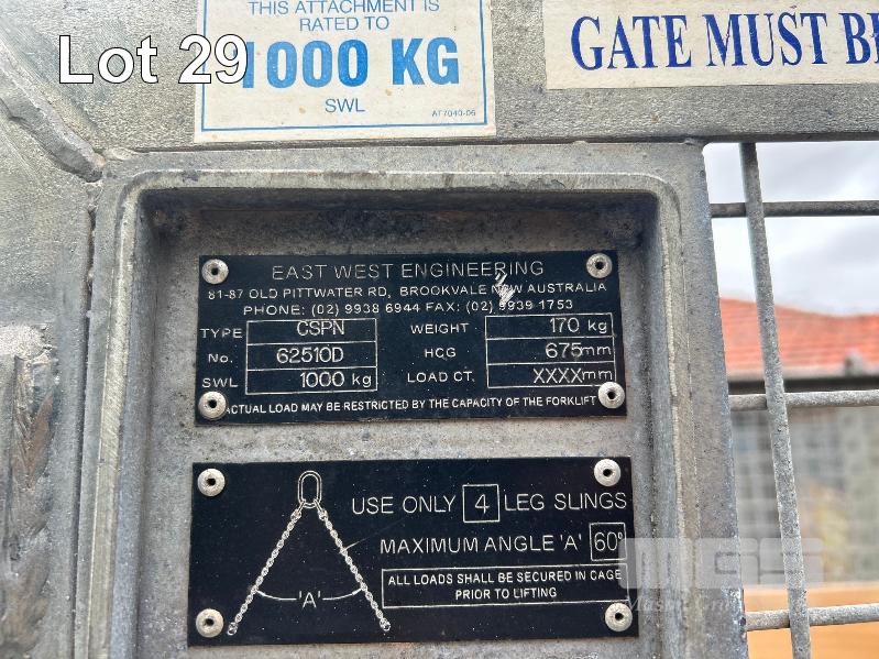 2 x LIFTING CAGES, EAST WEST ENGINEERING (CSPM) RATED: 1,000kg LIFTING POINTS & FORK POCKETS 1350 x 1350mm x 1000mm (H)