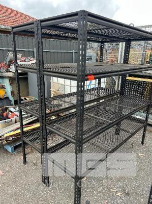 2 x MODULAR SHELF UNITS, BLACK STEEL, 4 TIER SIZE: 1800 x 540 x 1830mm (H)