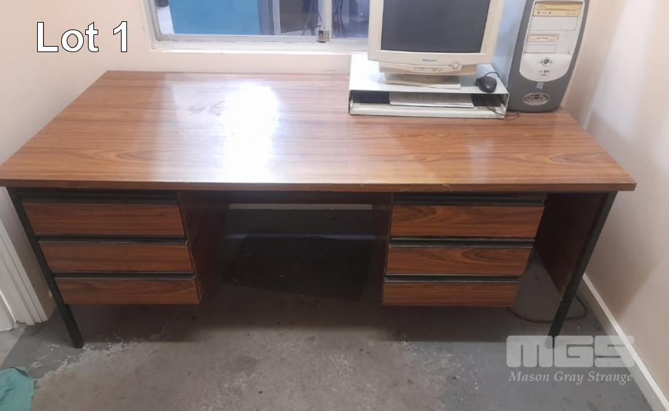 TIMBER LAMINATE DESK, OFFICE CHAIR & 4 DRAWER FILING CABINET (DOES NOT INCLUDE PC)
