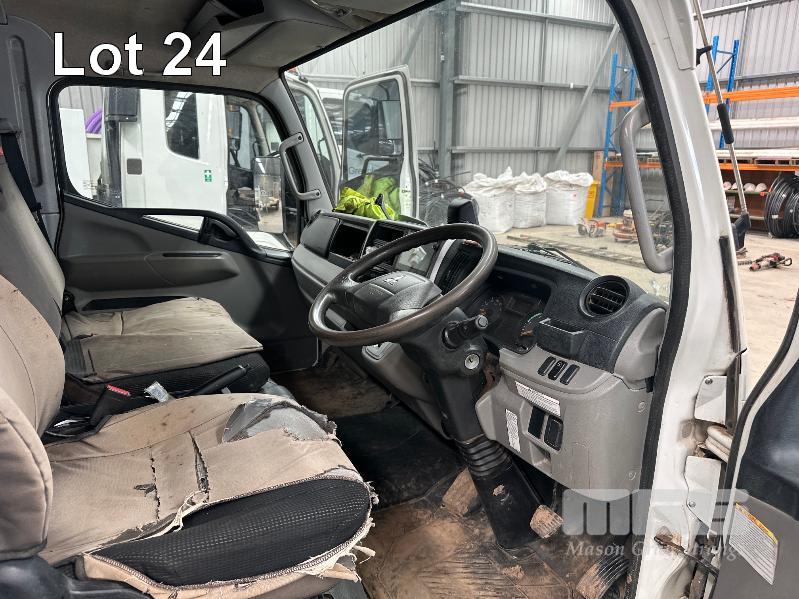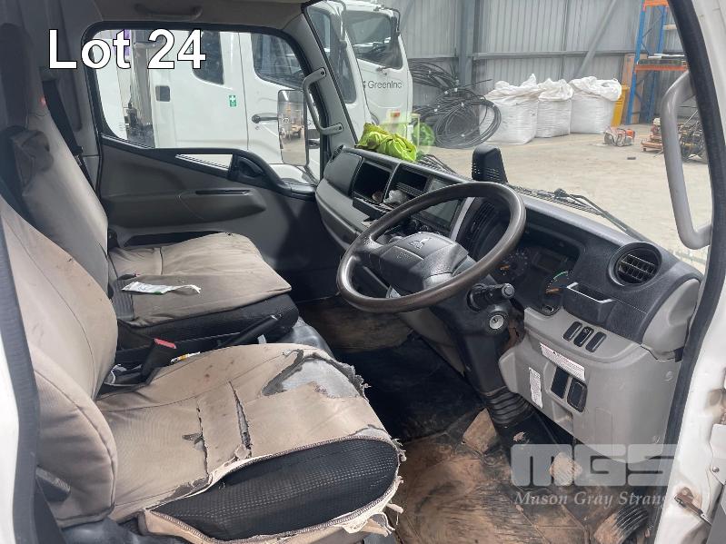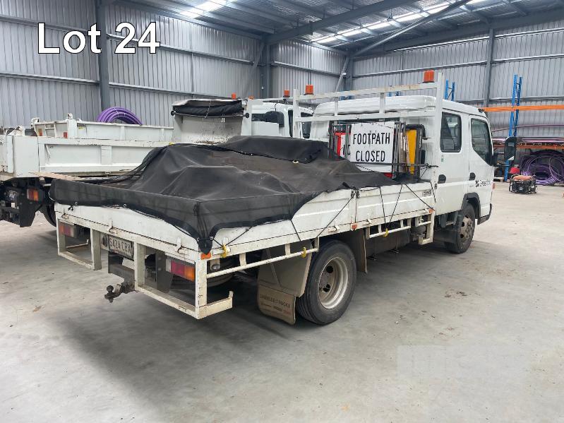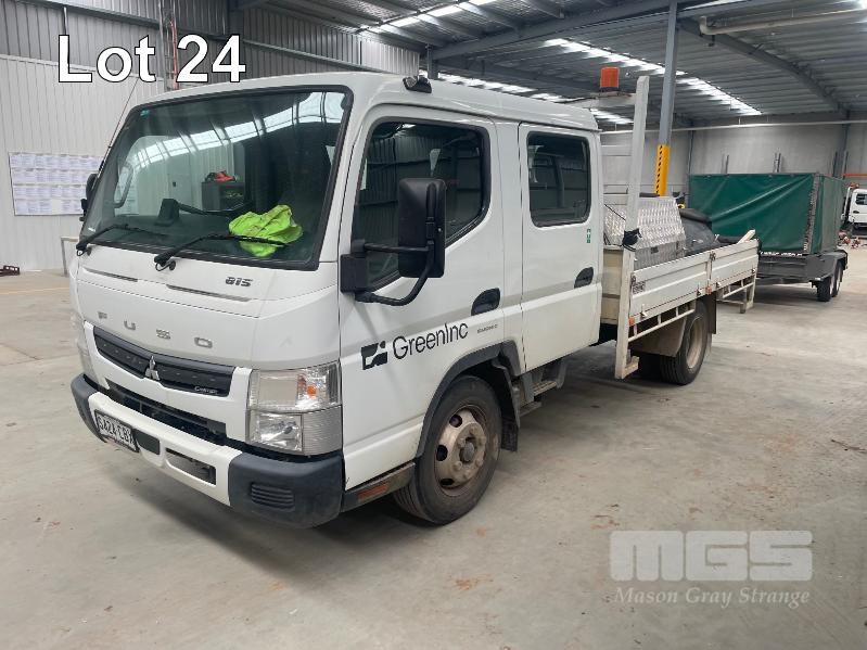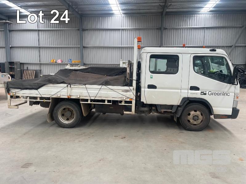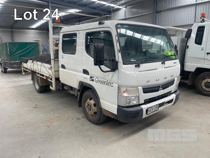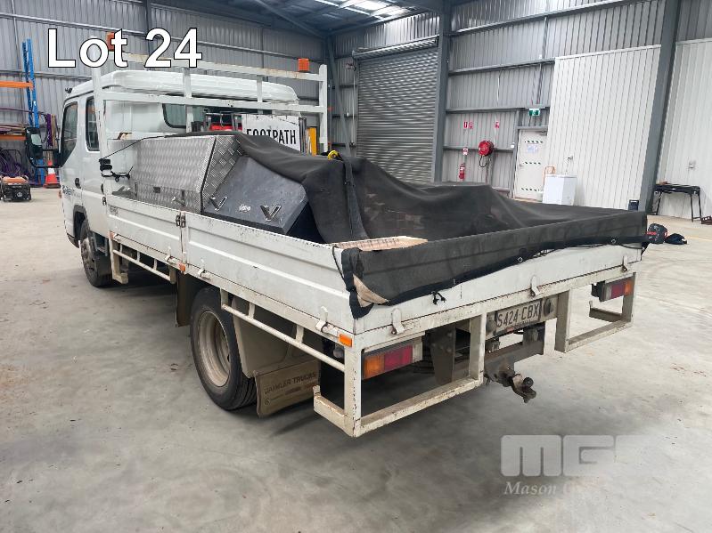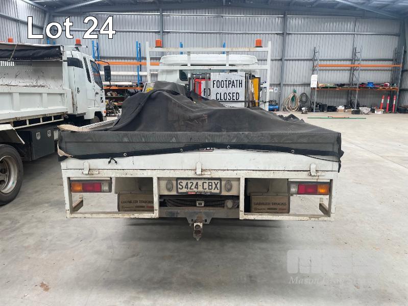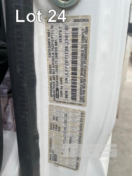 2019 MITSUBISHI CANTER 815 4x2 CREW CAB REG: S424CBX (SA) VIN: JLFFEB71E0KJ30136 ODO: 37,007 GVM: 4495 AUTO, DIESEL, WHITE, 7 SEAT, AIR CON, STEEL DROP SIDE TRAY, 3300mm (L), 2 x TOOL BOXES (WITH 1 KEY/S)