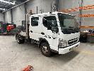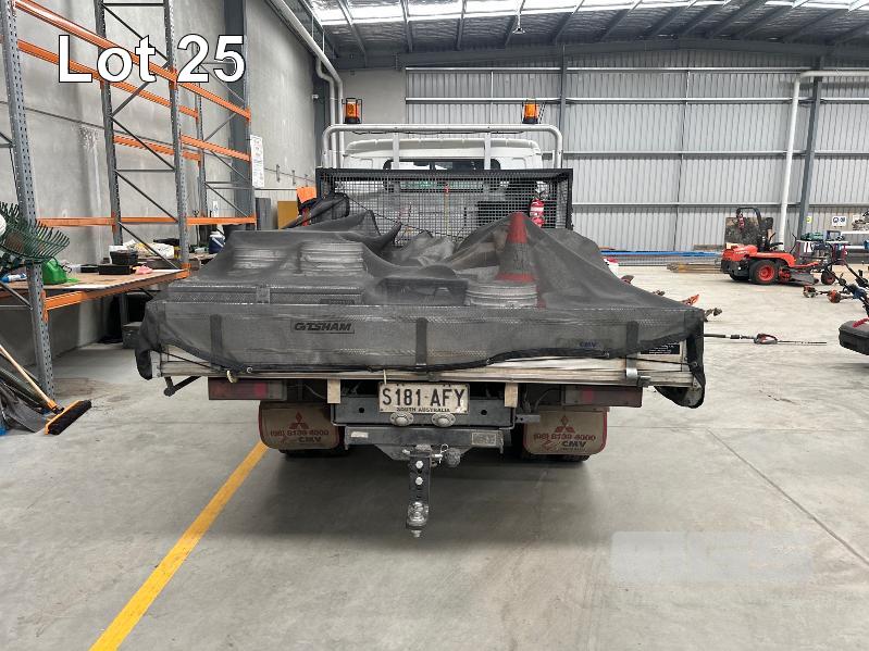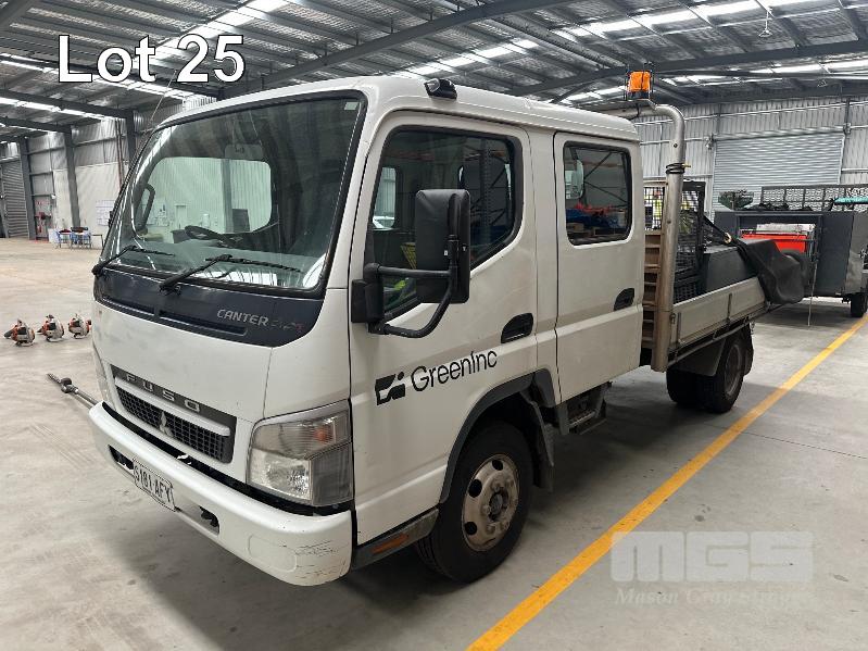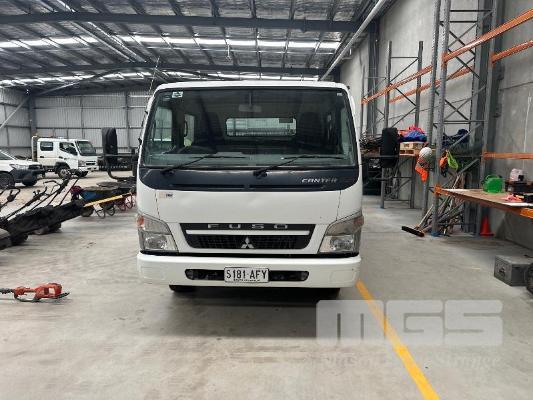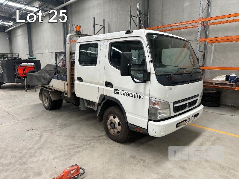2009 MITSUBISHI CANTER 3.5T 7/600 FE84DEWSRFAB 4X2 CREW CAB REG: S181AFY VIN: JLFFE840E0KJ10028 ODO: 176,563 GVM: 6500 GCM: 10,000 5 SPEED MANUAL, DIESEL, WHITE, 4 DOORS, 7 SEAT, ALLOY TRAY, 3200mm, DROP SIDE LOCK UP CAGE BEACON & LIGHT BAR (WITH 1 KEY/S)