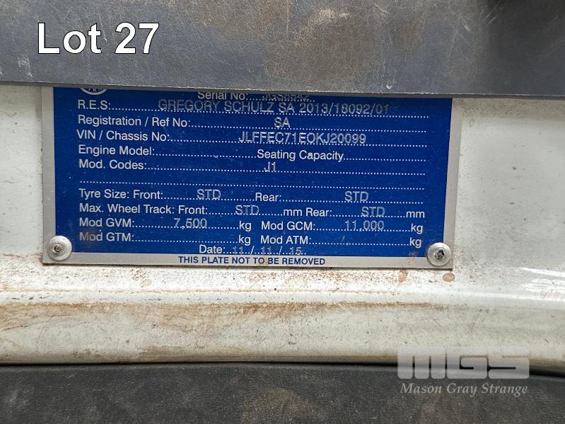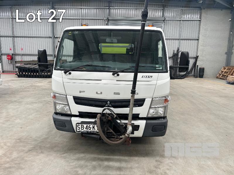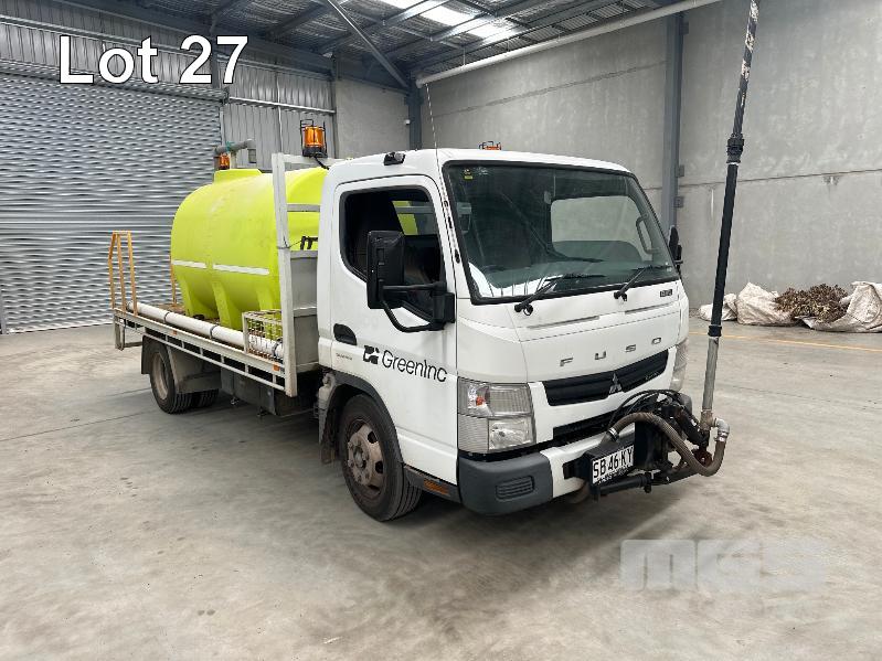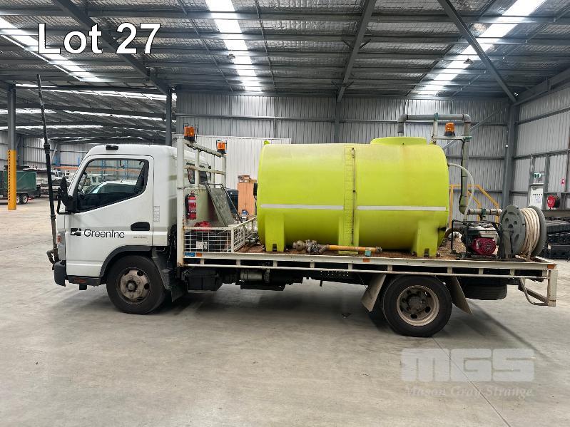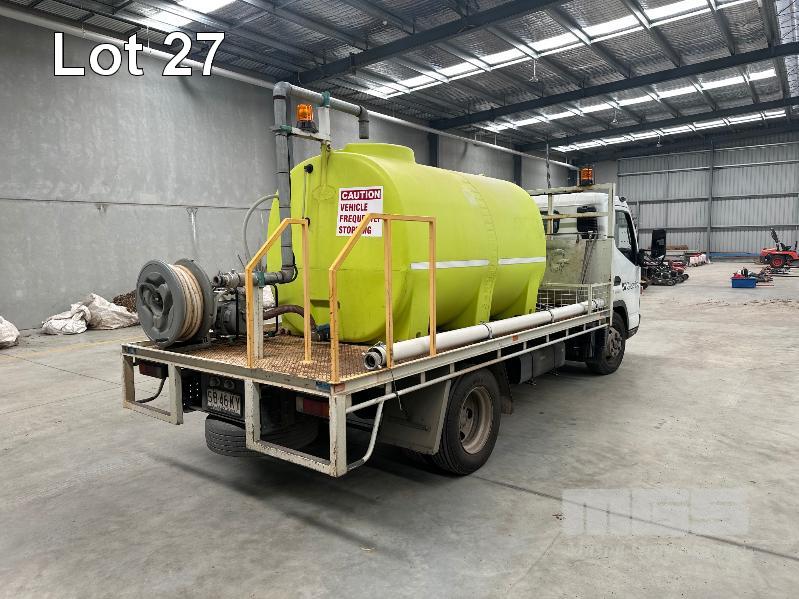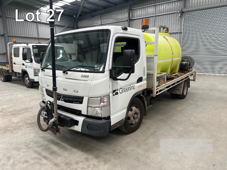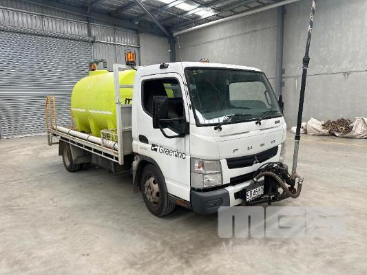 2015 MITSUBISHI CANTER 815 7/800 4X2 CAB CHASSIS REG: SB46KY VIN: JLFFEC71E0KJ20099 ODO: 93,004km GVM: 7500 GCM: 8000 AUTOMATIC, WHITE, 2 DOORS, 3 SEAT, 4000L WATER TANK, PETROL WATER PUMP, HOSE REEL, TREE WATERING BOOM WITH JOYSTICK CONTROL STEEL TRAY, 4300mm, HYDRANT TAP (WITH 1 KEY/S)