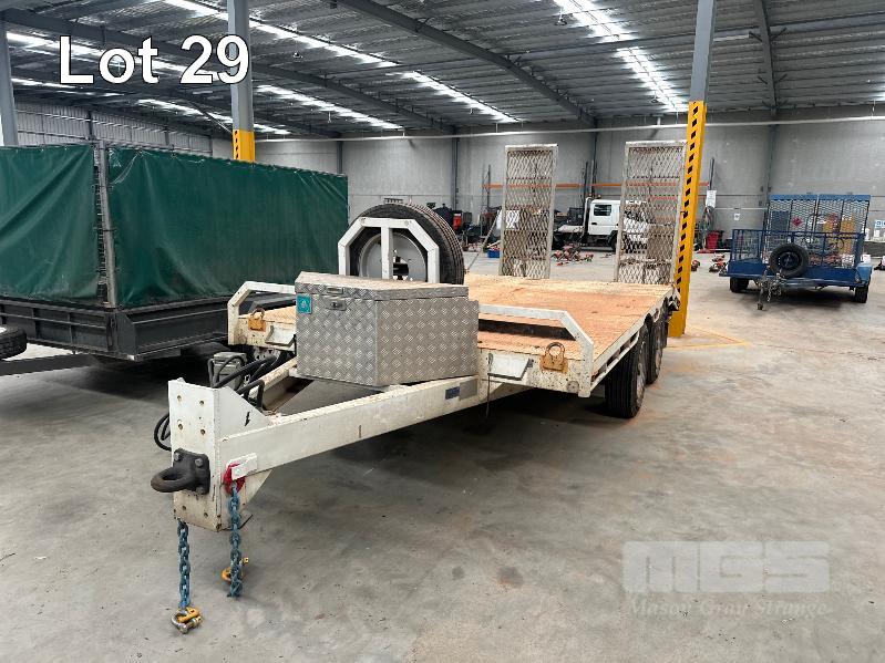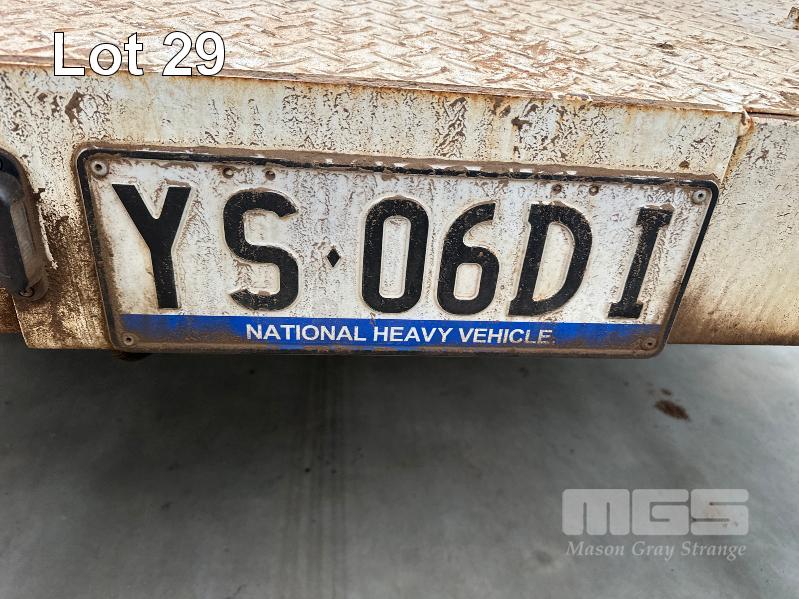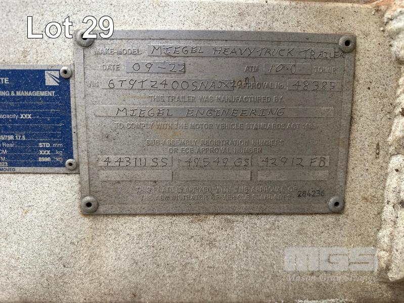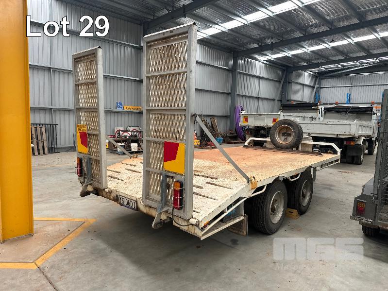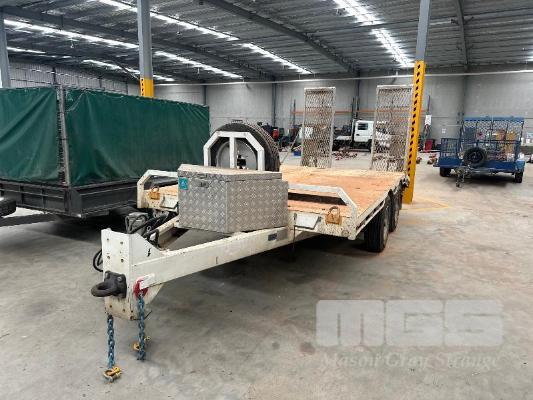 2022 MIEGEL ENGINEERING DUAL AXLE BEAVER TAIL PLANT TRAILER, REGO: YS06DI, MOD: HEAVY TRUCK TRAILER, ATM: 10,000KG, VIN: 6T9T2400SNAJX2, RING COUPLER, TOOL BOX STORAGE, 4900mm TRAY, HYDRAULIC RAMPS, AIR BRAKES