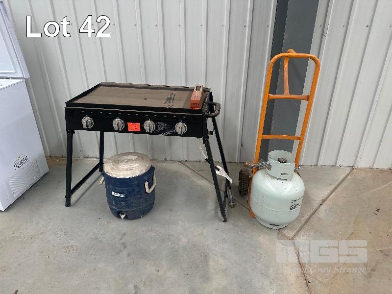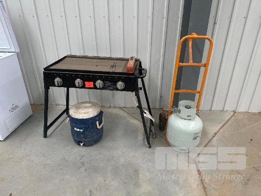 JUMBUCK 4 BURNER BBQ, GAS BOTTLE, ESKY WATER DISPENSER, WESTINGHOUSE CHEST FREEZER, MOD: ML, 145L CAP, 240V 10AMP