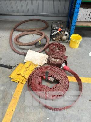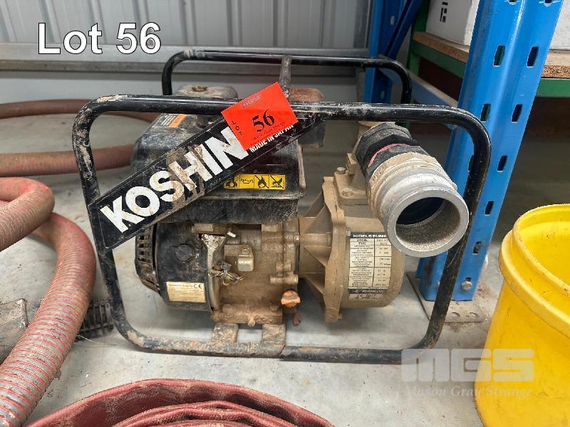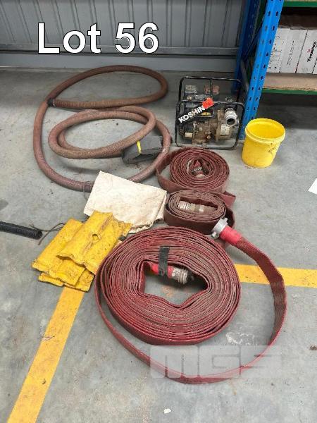KOSHIN WATER PUMP, PETROL, MOD: SEV-50X, WITH 3 x. LAY FLAT HOSES & HOSE WEIGHTS