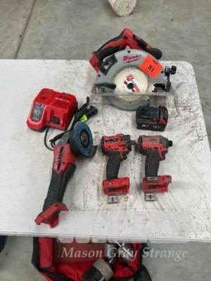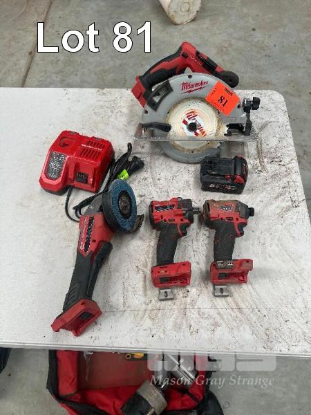 MILWAUKEE 18V TOOLS, CIRCULAR SAW, ANGLE GRINDER, TEK GUN, RATTLE GUN, 1 x 5.0AH BATTERY & CHARGER