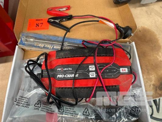 PROJECTA PRO CHARGE BATTERY CHARGER + NEW LEVEL ACTION GREASE GUN