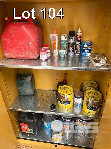 FLAMMABLES SAFETY CABINET, 250L, & CONTENTS, PAINT, OIL, FUEL
