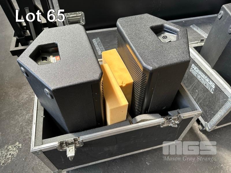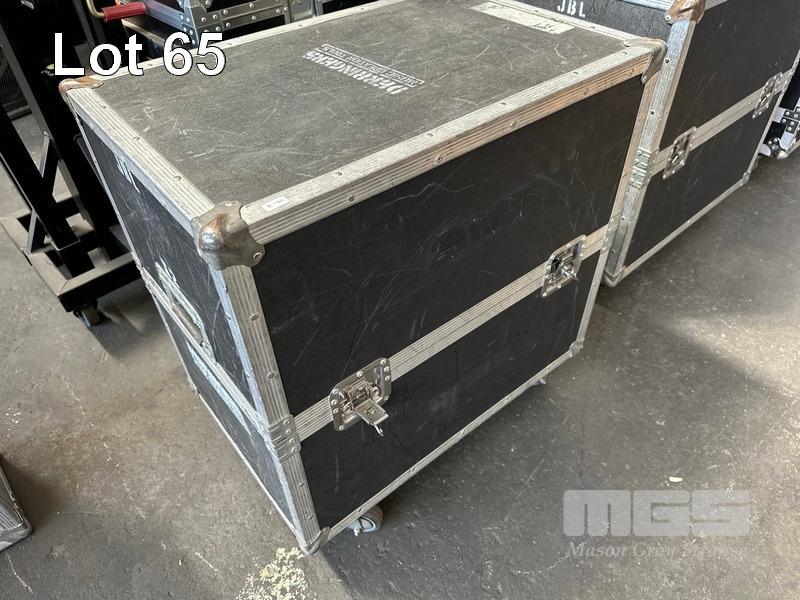 PAIR JBL SRX712M SPEAKERS WITH MOBILE ROAD CASE, 72 x 47 x 66cm