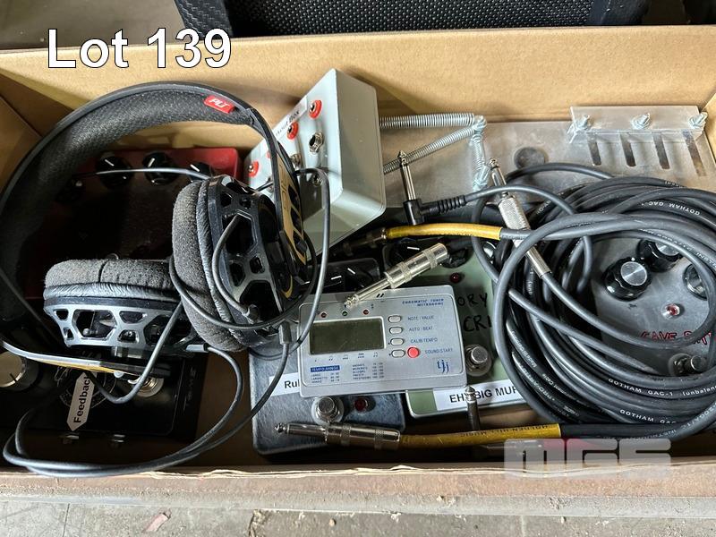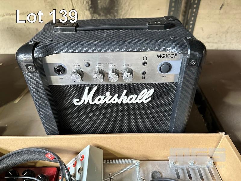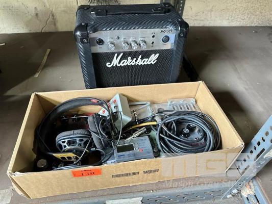 MARSHALL PRACTICE AMP MG10CF WITH ASST EFFECTS PEDALS, HEADPHONES, CABLES, TUNER ETC