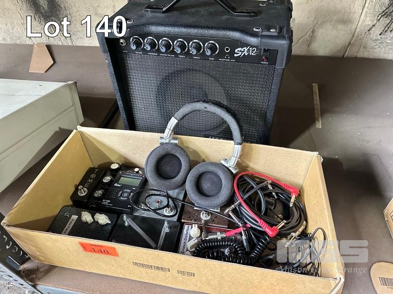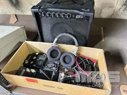 WASHBURN PRACTICE AMP SX12 WITH ASST EFFECTS PEDALS, HEADPHONES, TUNER ETC
