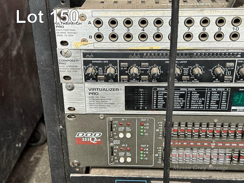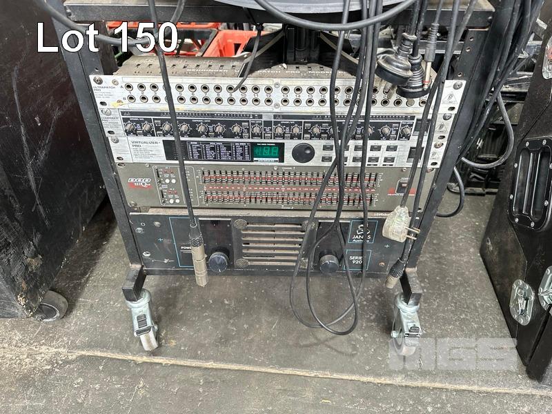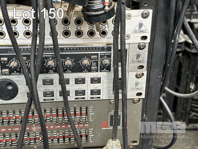 BEHRINGER EURORACK MX2642A MIXING CONSOLE ON MOBILE STAND WITH PATCH BAY, DYNAMICS PROCESSOR, DIGITAL EFFECTS PROCESSOR, GRAPHIC EQUALIZER