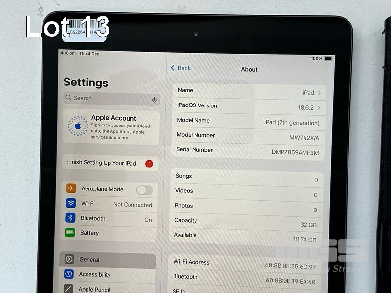 APPLE iPAD 7TH GEN, 32GB, Wi-Fi, SPACE GREY, MODEL MW742X/A, A2197 WITH COVER (NO CABLE, NO CHARGER) S/N:DMPZ8594MF3M