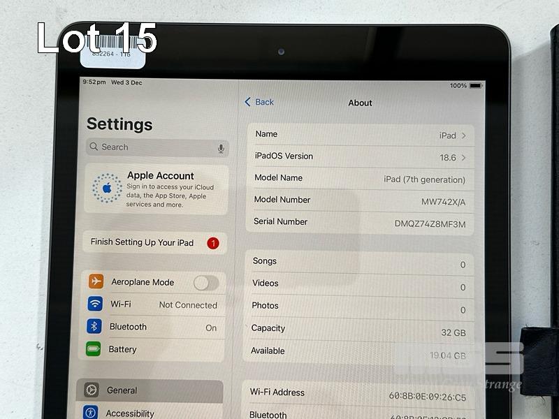 APPLE iPAD 7TH GEN, 32GB, Wi-Fi, SPACE GREY, MODEL MW742X/A, A2197 WITH COVER (NO CABLE, NO CHARGER) S/N:DMQZ74Z8MF3M
