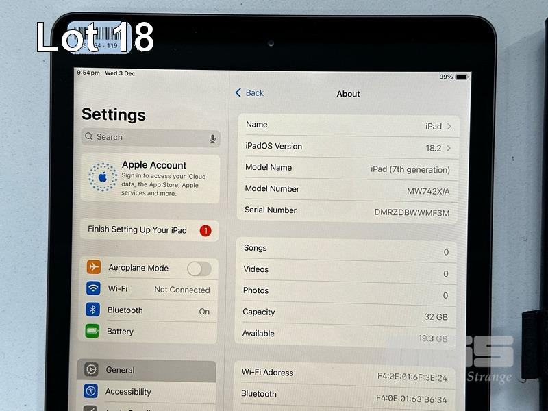 APPLE iPAD 7TH GEN, 32GB, Wi-Fi, SPACE GREY, MODEL MW742X/A, A2197 WITH COVER (NO CABLE, NO CHARGER) S/N:DMRZDBWWMF3M