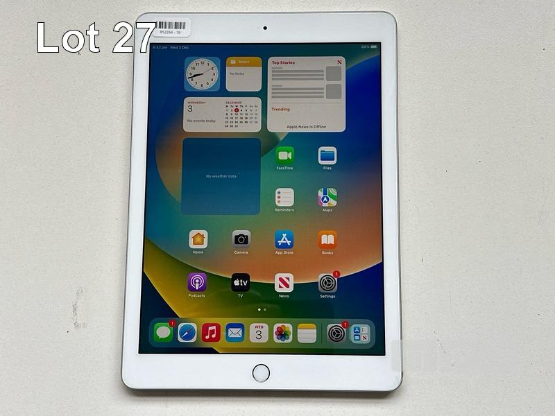 APPLE iPAD 5TH GEN, 32GB, Wi-Fi, SILVER, MODEL MP2G2X/A, A1822 (NO CABLE, NO CHARGER) S/N:DMPTWAQNHLFC