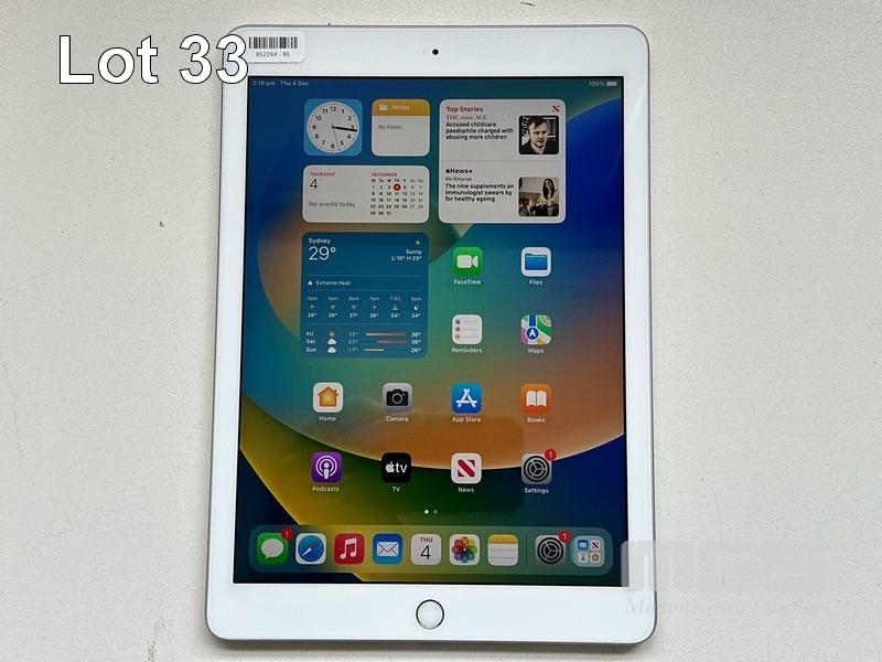 APPLE iPAD 5TH GEN, 32GB, Wi-Fi, SILVER, MODEL MP2G2X/A, A1822 (NO CABLE, NO CHARGER) S/N:DMPTWGR3HLFC