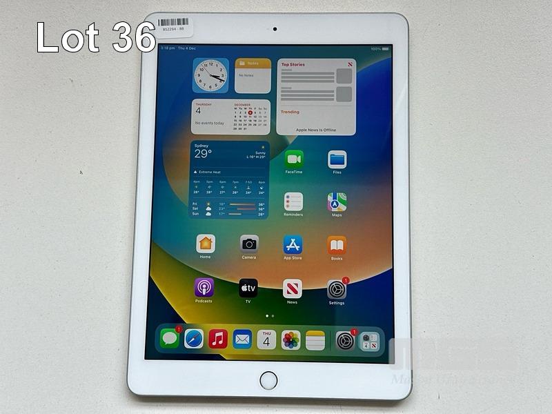 APPLE iPAD 5TH GEN, 32GB, Wi-Fi, SILVER, MODEL MP2G2X/A, A1822 (NO CABLE, NO CHARGER) S/N:GCTV8KR9HLFC