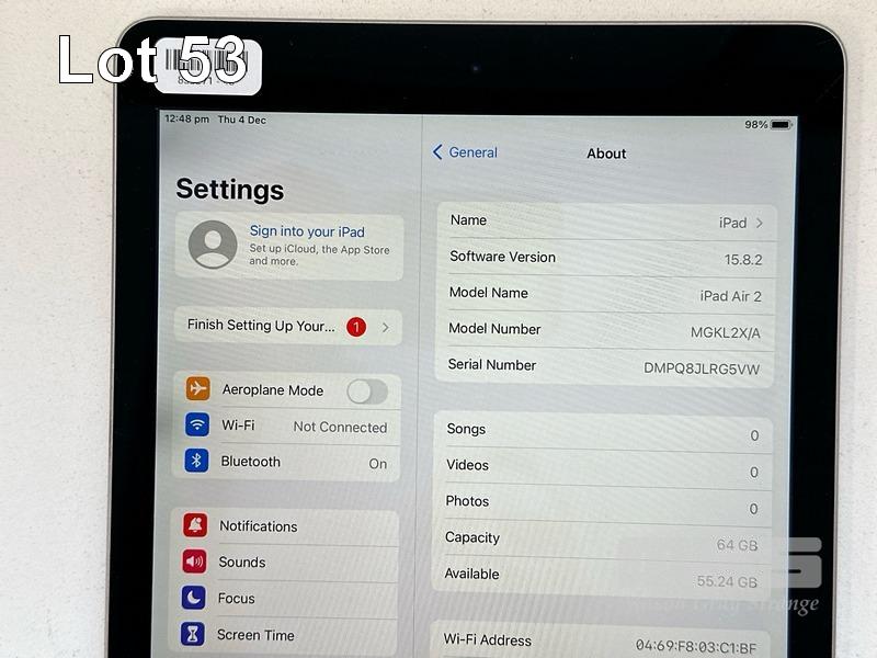APPLE iPAD AIR 2, 64GB, Wi-Fi, SPACE GREY, MODEL MGKL2X/A, A1566 WITH CABLE & CHARGER (NOTE: MINOR SCRATCHES ON SCREEN & CASING) S/N:DMPQ8JLRG5VW