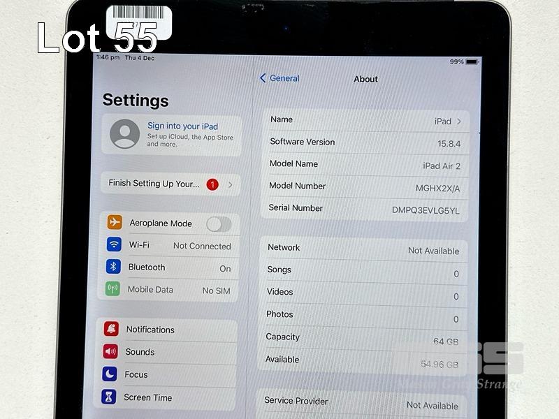 APPLE iPAD AIR 2, 64GB, Wi-Fi, CELLULAR, SPACE GREY, MODEL MGHX2X/A, A1567 WITH CABLE & CHARGER (NOTE: SCRATCHES ON SCREEN) S/N:DMPQ3EVLG5YL