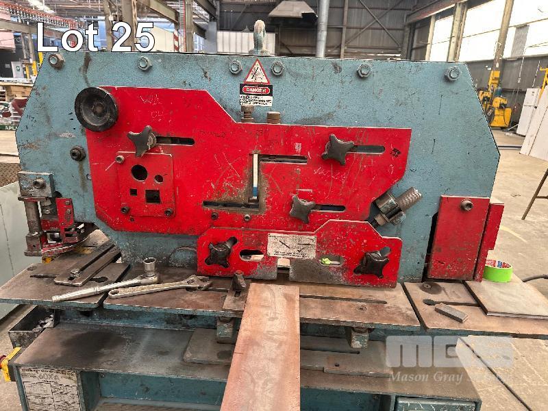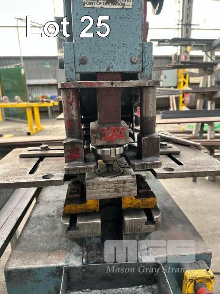 HYDRAULIC PUNCH & SHEAR, KINGSLAND 60XA 60 TONNE WITH PUNCHES & BACK STOP, INFEED ROLLERS & SMALL STEEL BENCH