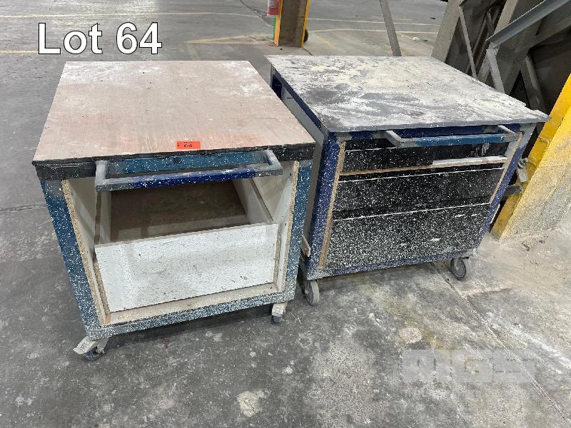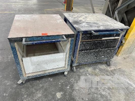 2 x STEEL FRAME, 3 DRAWER TROLLEYS, 900(L) x 800 (W) x 900mm (H)