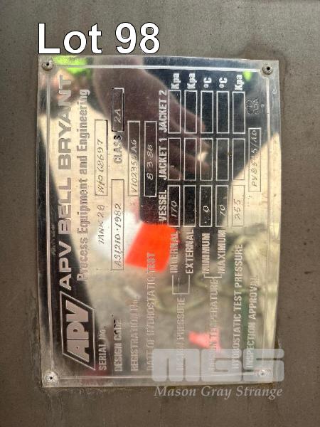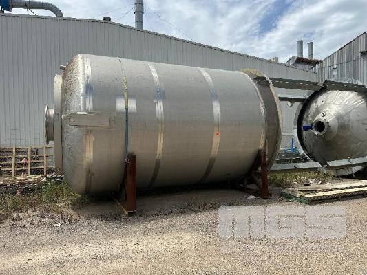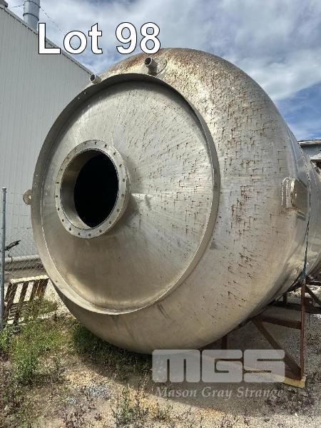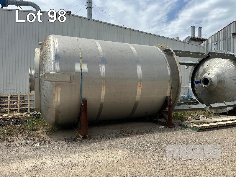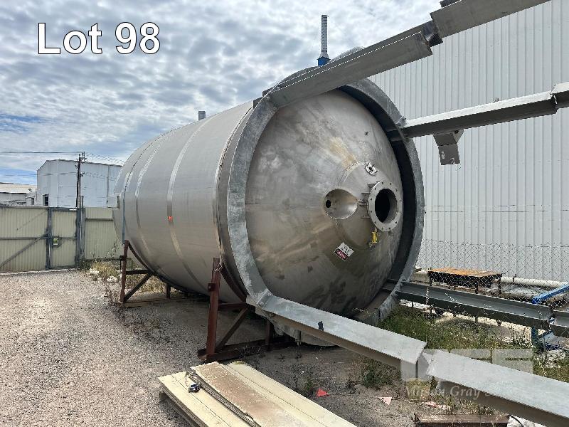 STAINLESS STEEL UPRIGHT TANK, APV PRESSURISED BEVERAGE VESSEL CONE BASE DESIGN PRESSURE: 170 KPA 30,000 LITRE WITH SHIPPING CRADLE