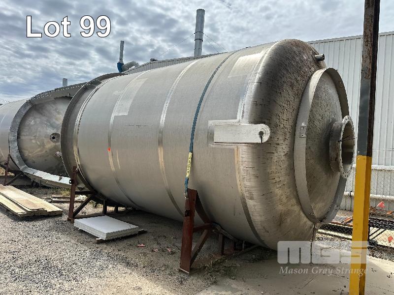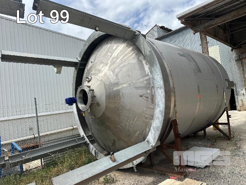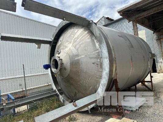 STAINLESS STEEL UPRIGHT TANK, APV PRESSURISED BEVERAGE VESSEL CONE BASE DESIGN PRESSURE: 170 KPA 30,000 LITRE WITH SHIPPING CRADLE