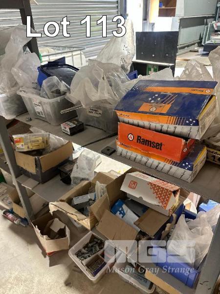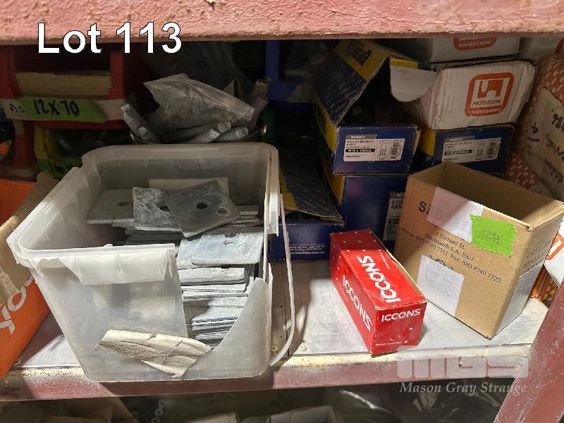 LARGE QUANTITY HARDWARE, NUITS, BOLTS, WASHERS, PLATES, SCREWS, RIVET, PIPE SUPPORT & LOCSONS