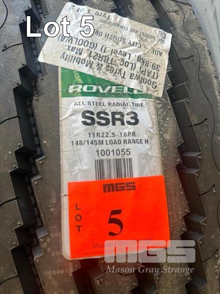 PAIR TRUCK TYRES, ROVELO 11R 22.5 SSR3